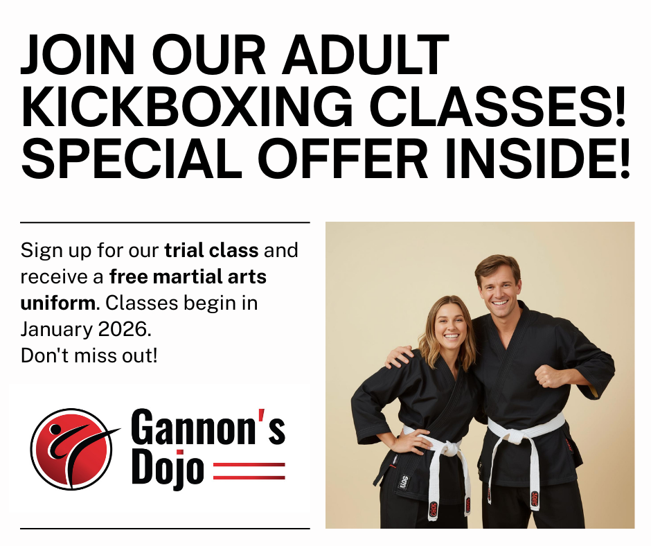 You won’t easily find another kickboxing class that will get you into shape this fast! The kickboxing classes at Gannon’s Martial Arts give you a calorie crushing workout that burns fat, tones up muscle and gives you a massive endorphins rush!